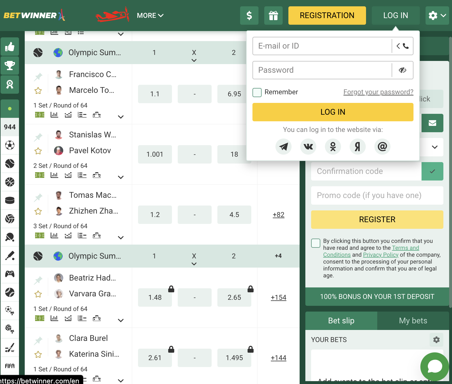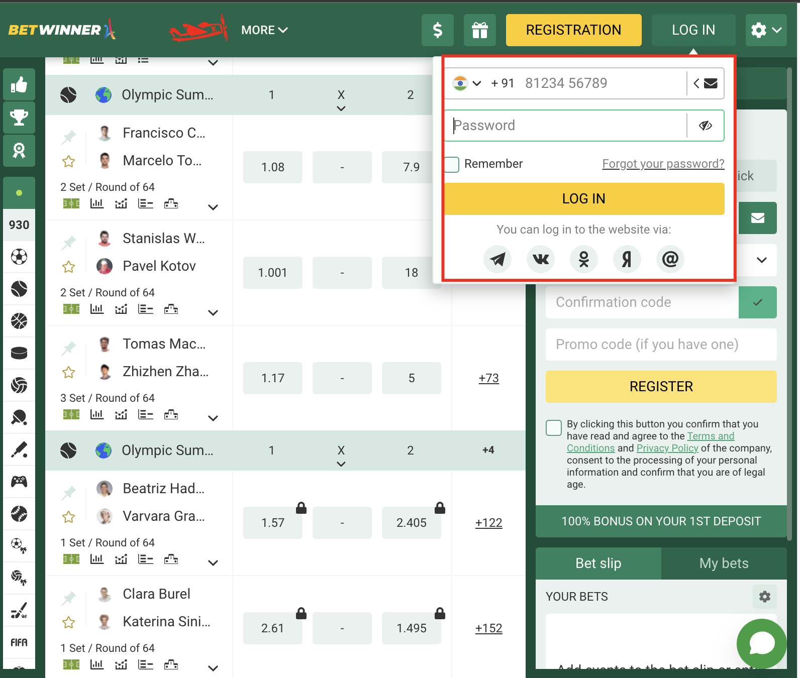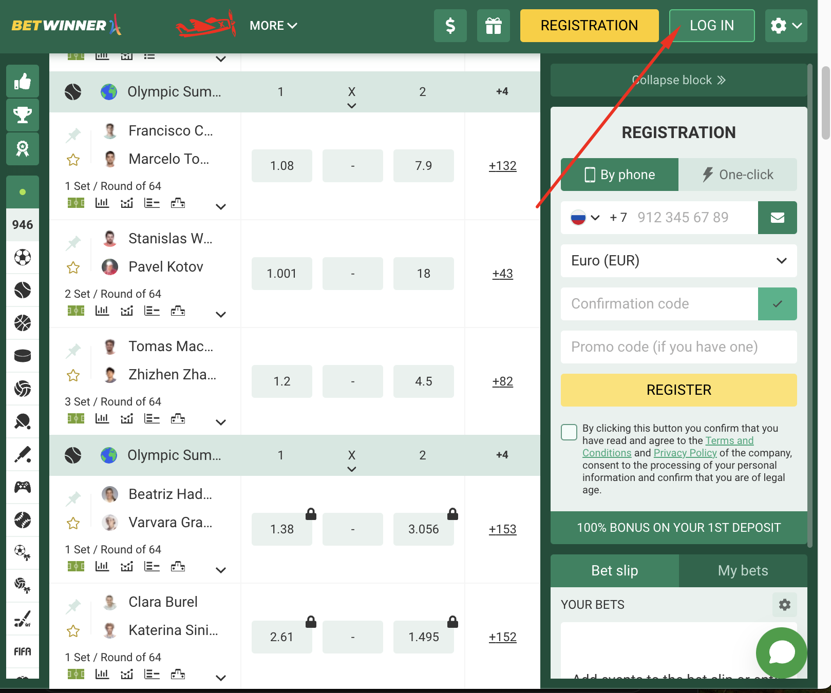 Here is a step-by-step guide on how you can bet on the Paris Olympic games using the Betwinner Olympic Marathon Free Bet Bonus Up to 27.59 EUR: