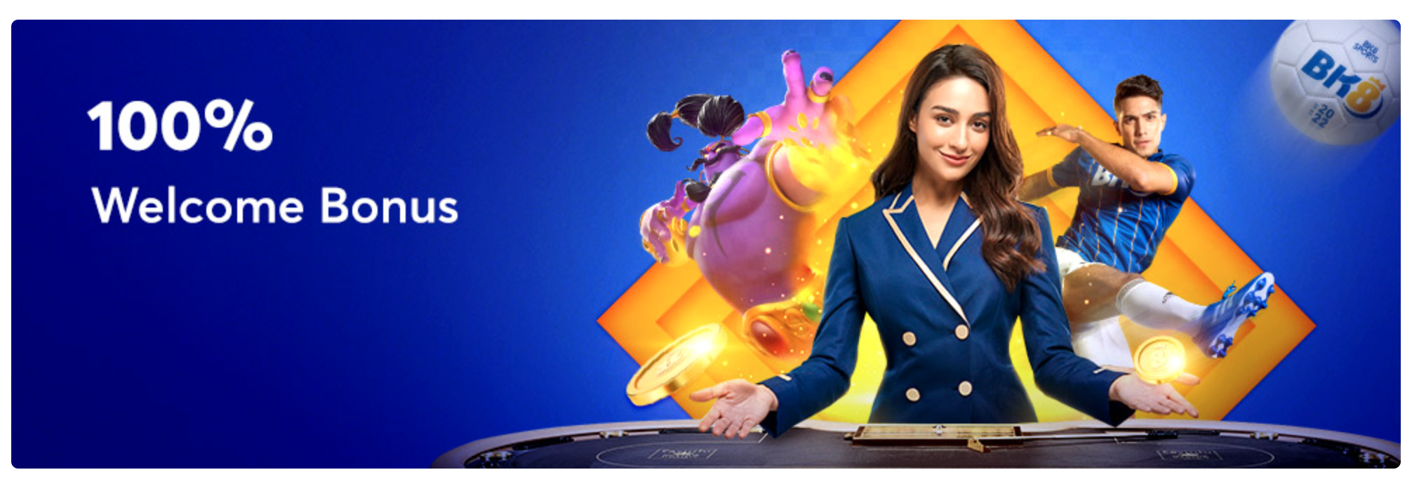 Claim a 100% welcome bonus up to 100 USD on your successful registration with BK8 and making a qualifying deposit of at least 50 USD.