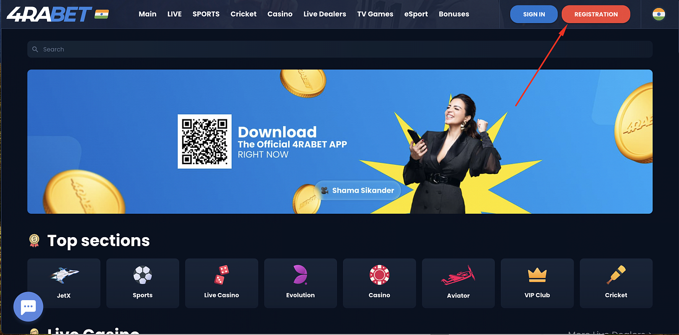 To begin your sign up process, go to the 4Rabet India platform. You can also access the bookmaker using a mobile application.