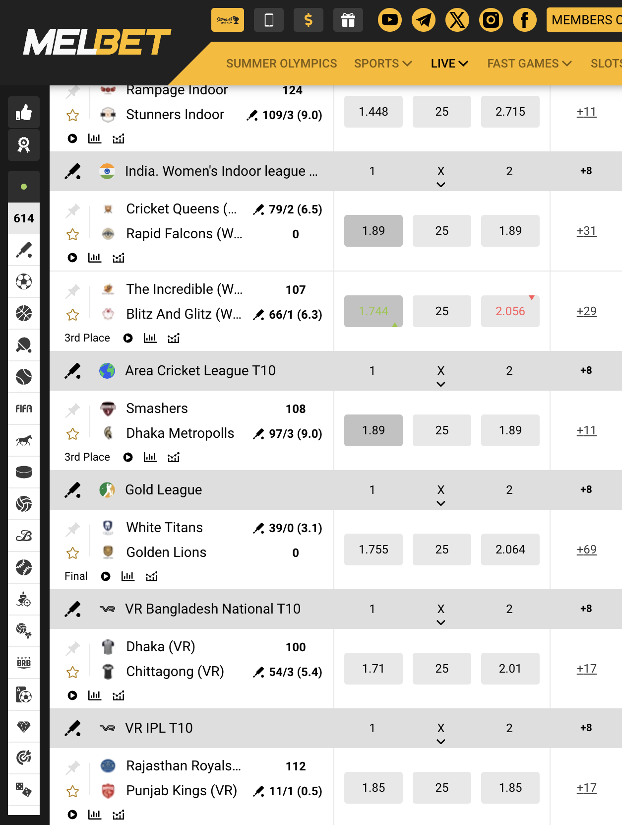 Navigate to the Sports or Live Sections