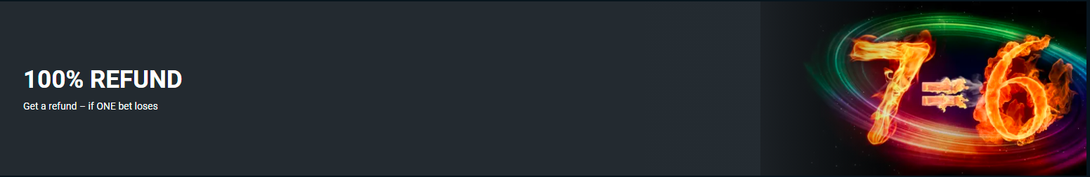 | ⭐️ Refund Bonus | ❤️ 100% refund | ⚡️ Place an accumulator bet having at least 7 events & get 100% refund if one leg losses | ✅ The minimum odds requirements for the events is 1.70 |
