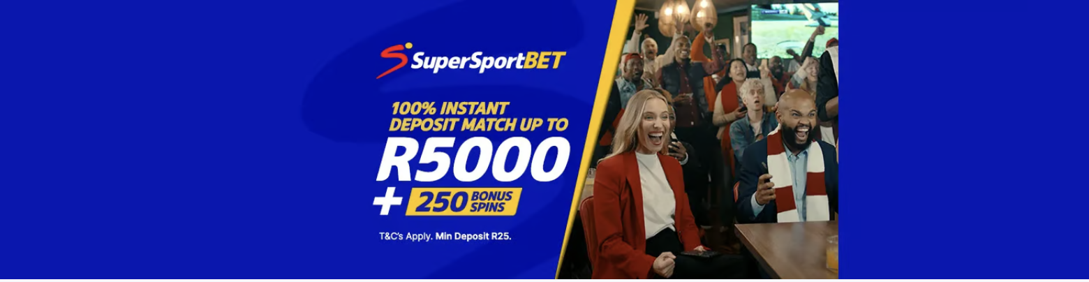 On registration SupersportBet welcomes their new customers with a 3-in-1 offer welcome offer where players get a chance to claim R25 on their successful registration, and on making a minimum deposit pf at least R25, they're awarded a 100% bonus match up to R5,000. This bonus comes with a set of wagering requirements which needs to be completed prior to transferring the bonus and its associated winnings for withdrawal. You can read more on this bonus here.