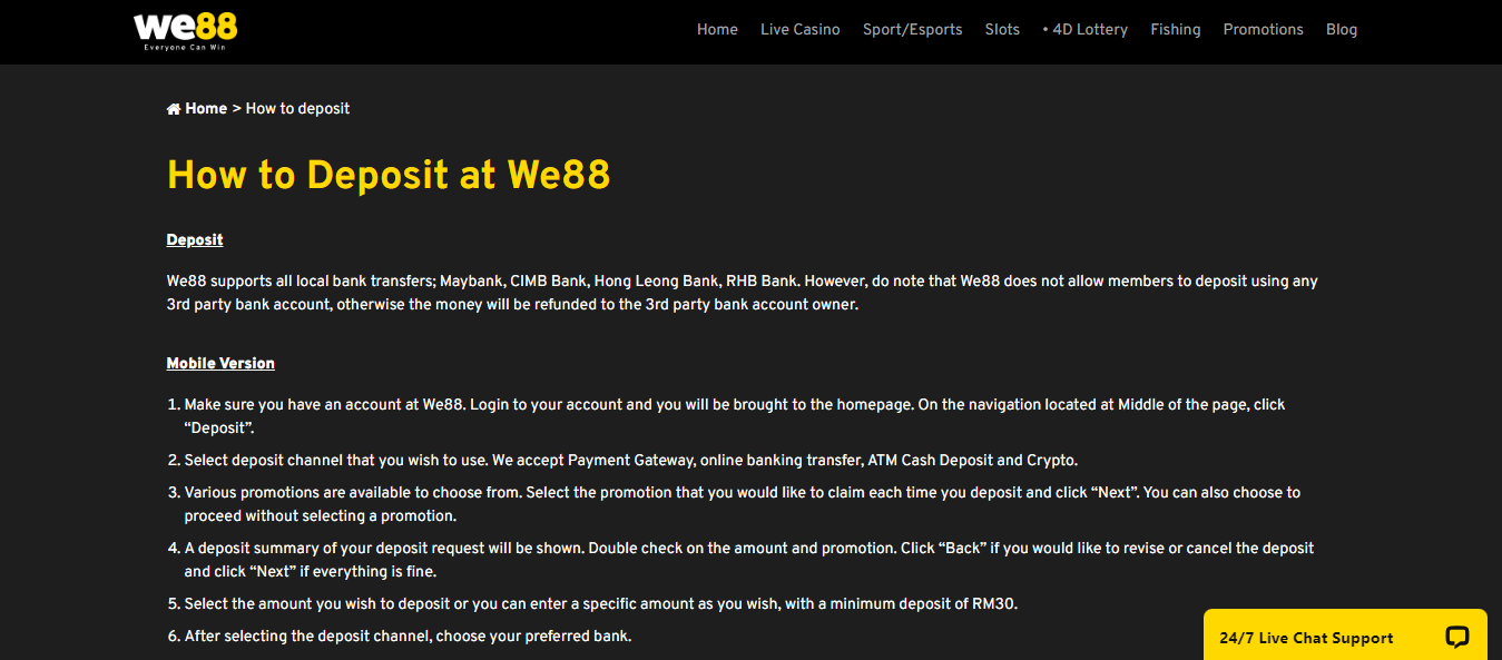 Join We88 Malaysia today and receive a 100% slot welcome bonus up to MYR 500. This bonus is valid for all slots/fishing games at We88 (Except Playtech and Mega888).