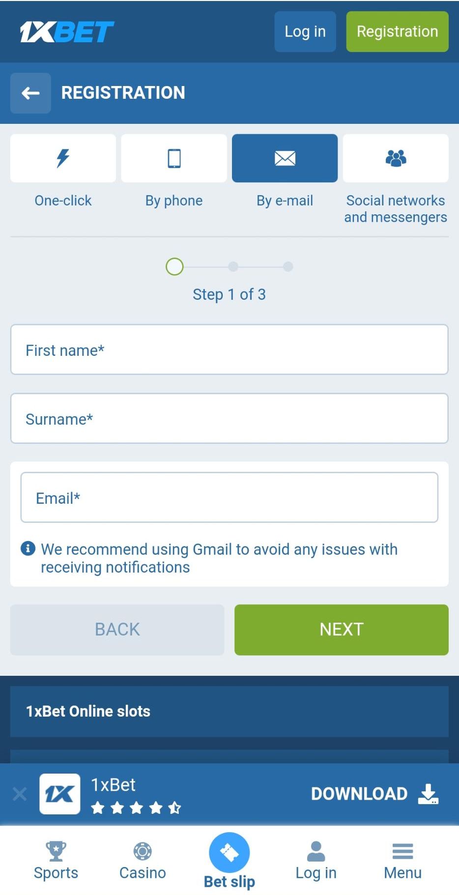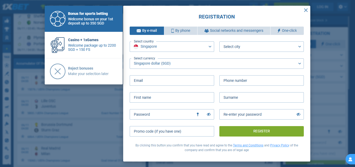 For players to enjoy 1xBet, they must first register, which means completing the registration steps: