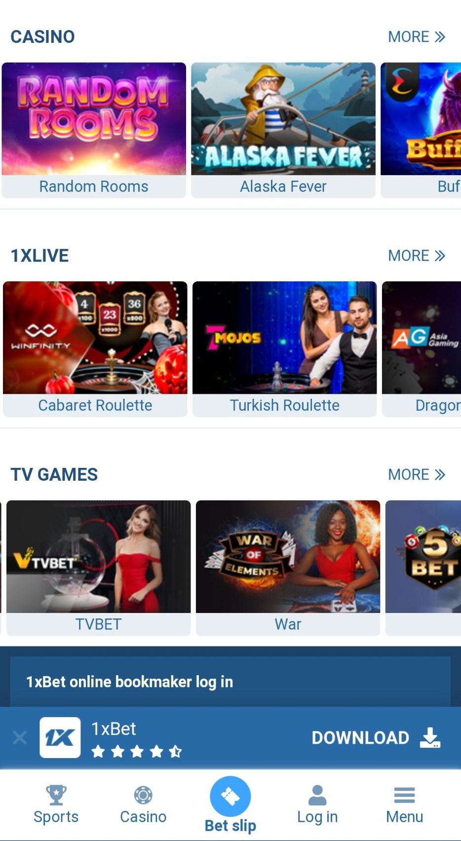 1xBet app casino