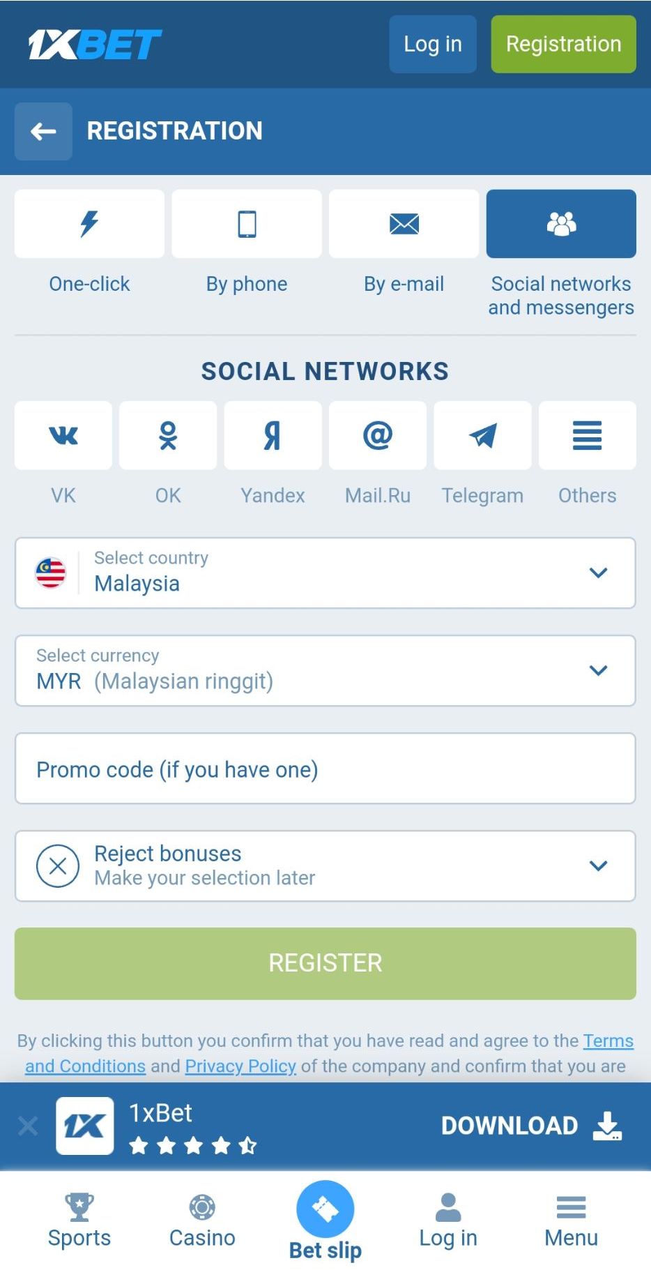 How To Register an Account From 1xBet App