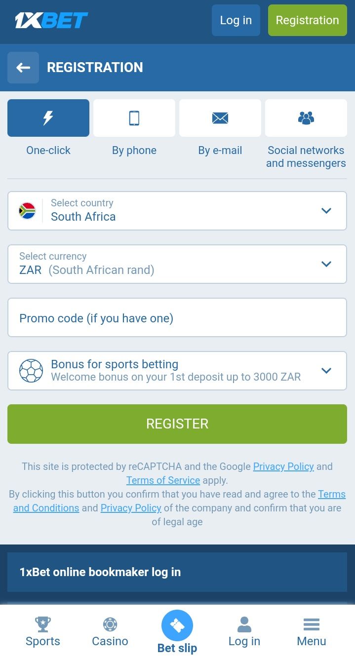 The one-click method is the fastest and can be the best option for players looking to quickly get a feel of 1xBet sportsbook. It is the first option that players find when starting their registration process.