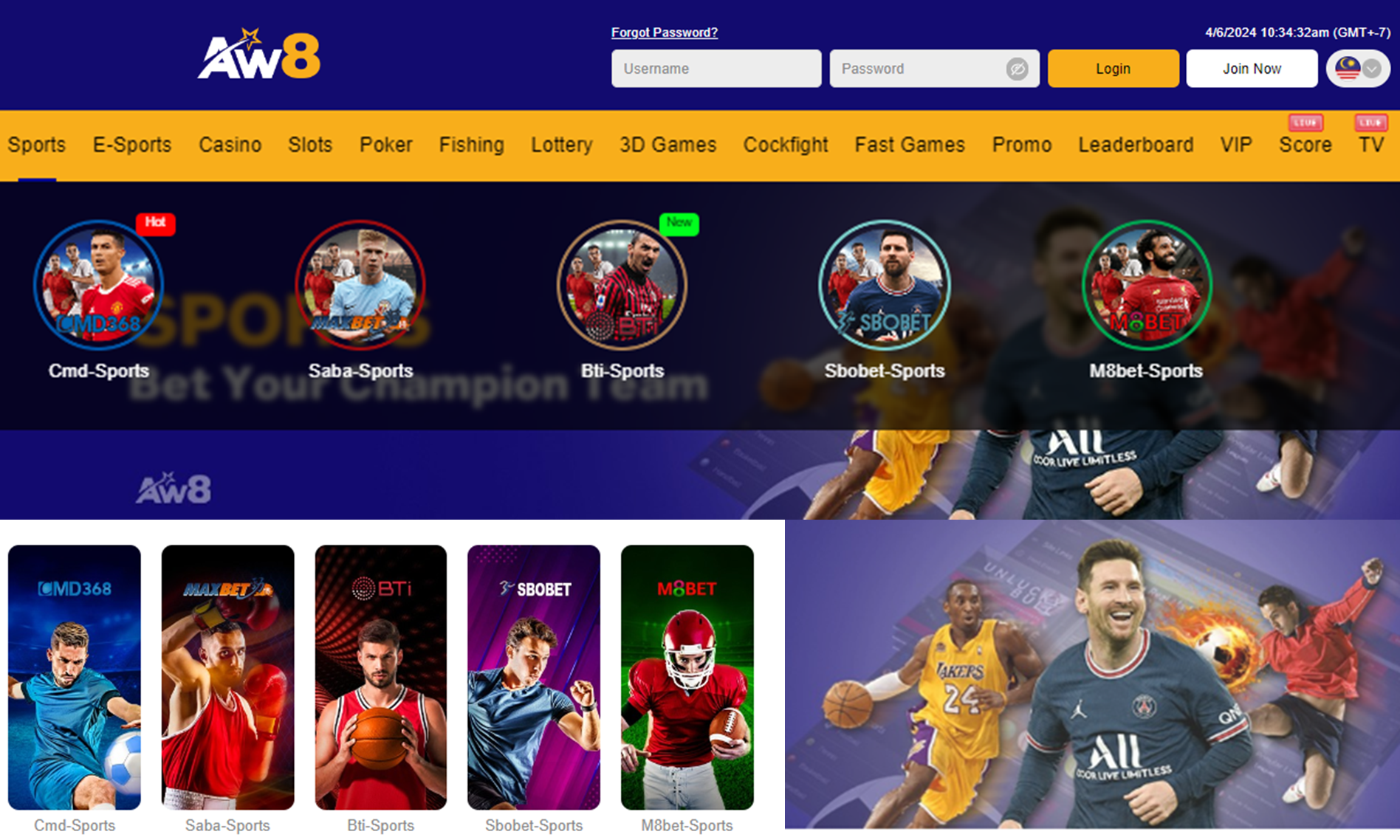 AW8 is an innovative bookmaker that allows bettors from the Asian region such as Malaysia, Vietnam, Cambodia, Thailand, Singapore and Indonesia to access casino gaming products like slots, fishing and table games. Sports betting is also provided including cricket, football, handball, etc. You can link directly to your country when you visit the online platform, and this will deliver the bonus offers for that location, like the 150% welcome bonus for Malaysia and Singapore and Vietnam, the 100% welcome bonus for Thailand and Cambodia, and the 25% welcome bonus for Indonesia. For this AW8 review, we will focus on the content from Malaysia.