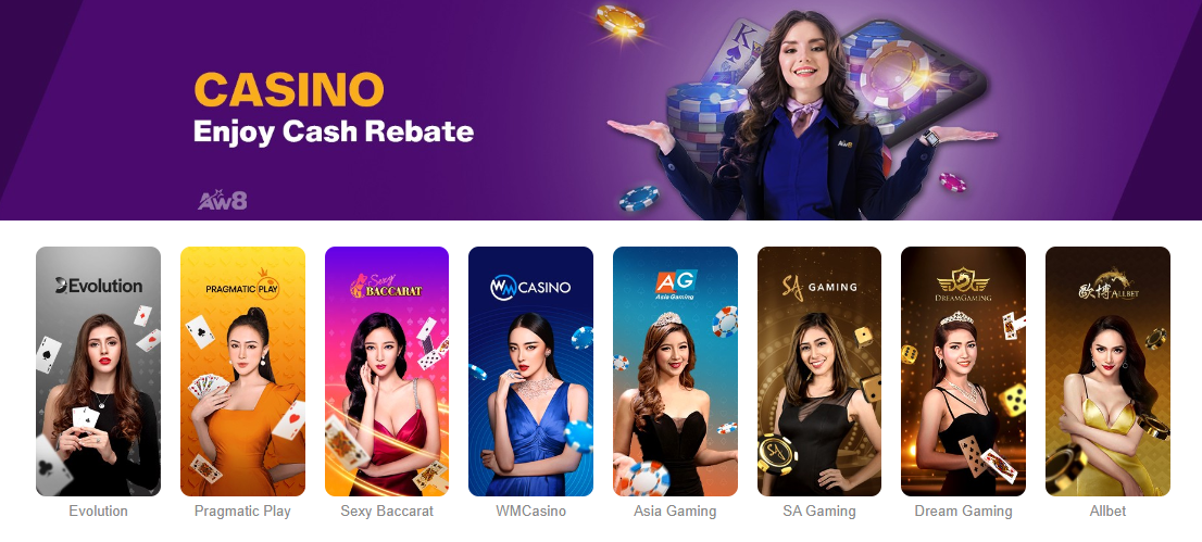 On the live AW8 casino review, we find 100+ online games, which include the ever popular table games such as poker, baccarat, roulette and blackjack. Aside from that, there are TV game shows available to play on the platform.