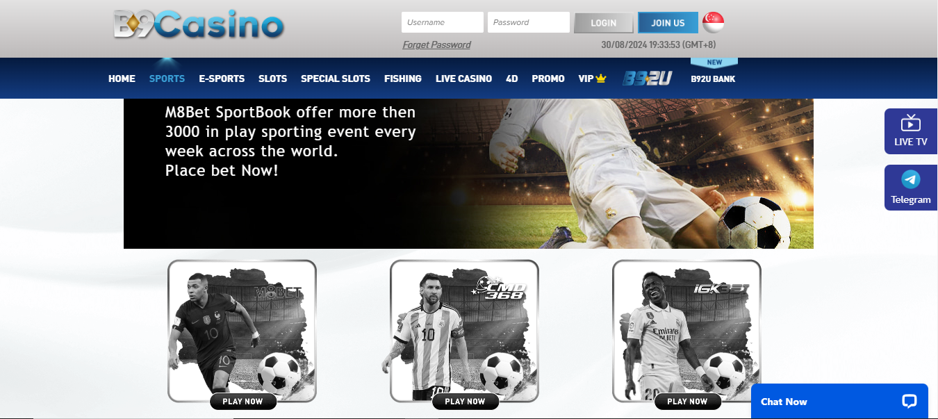 The betting service provider has rich sports and casino sections, with hundreds of games available to all Malaysian and Singaporean players. An array of gaming products, which include sports, eSports, slots, live casino and more are part of the make-up of B9 casino and online casino. Enticing offers exist for newbies and regulars such as the 150% welcome bonus up to SGD 1000 for new players in Singapore, and the 180% welcome bonus up to MYR 1300 for new players from Malaysia.