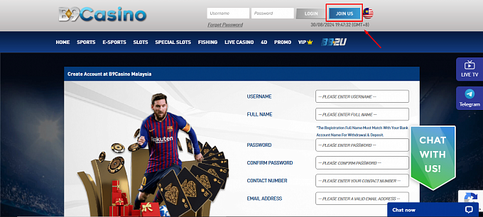 Sign Up with B9CasinoB9Casino LogIn Process