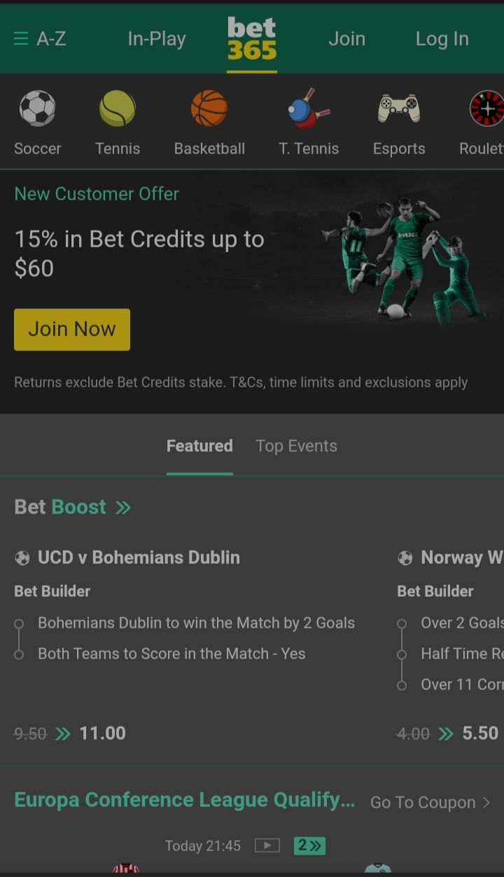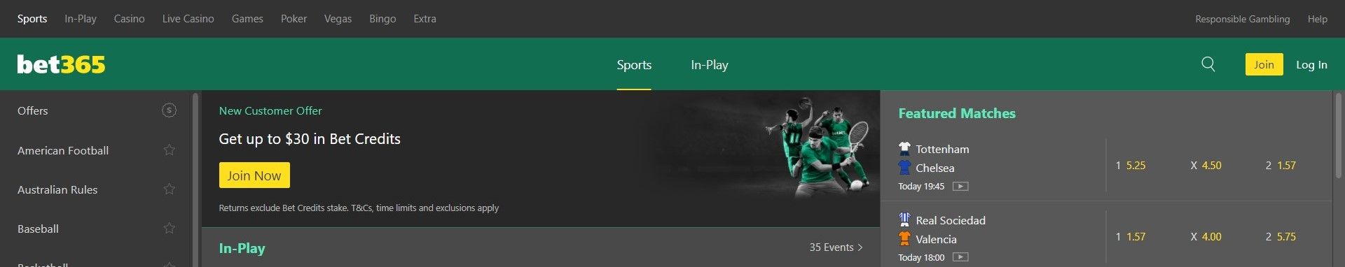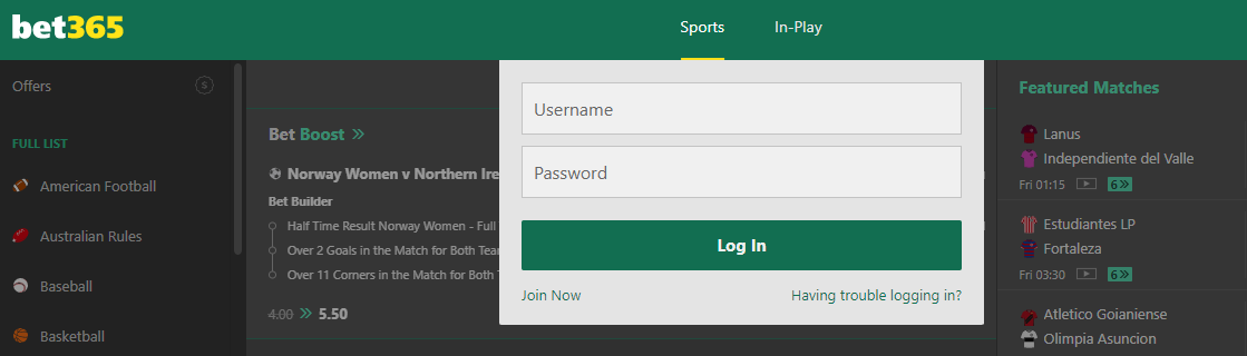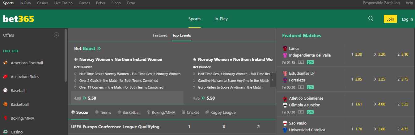 It's usual to see leagues listed on Bet365's list of sports that you were unaware even existed. Your first time using the website to search for sporting events will demonstrate the breadth of their selection.