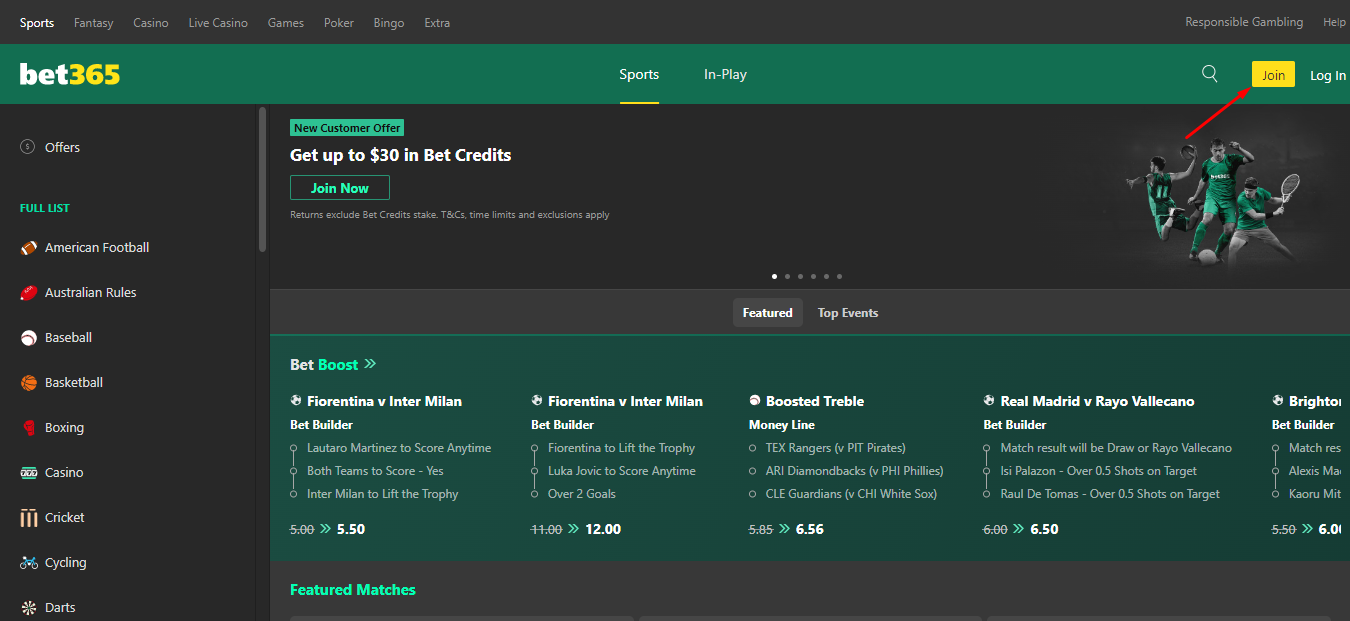 Go to the Bet365 homepage on your choice web browser to access the official Bet365 website.