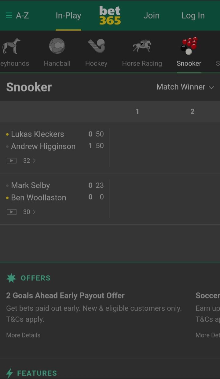 At Bet365 Sportsbook, the live betting selection is quite effective and dependable. The great in-play platform, where punters can get different events across various sports, is the first thing you notice on the dashboard when you check in to the website. Every year, Bet365 streams hundreds of events, providing you the best in sports action. These events include matches from the top domestic soccer leagues in Europe, Grand Slam tennis competitions, as well as EVERY UK and Irish horse race.