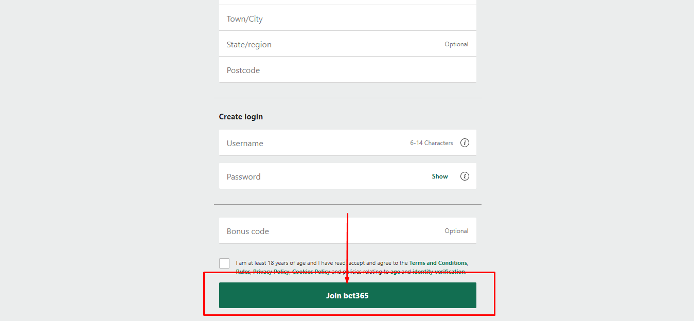 Enter the details needed by the sportsbook which include, country of residence, date of birth, names, contact number and email address,physical address and new username and password;