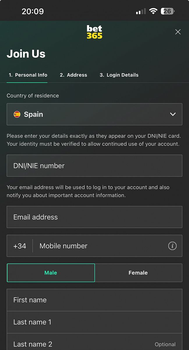 To registration process with Bet365 via the iOS or Android app is pretty straightforward, as long as you are willing to provide all the necessary information that the website requests. The process is identical to the one that needs to be followed when signing up via the mobile version of Bet365 or via the desktop version.