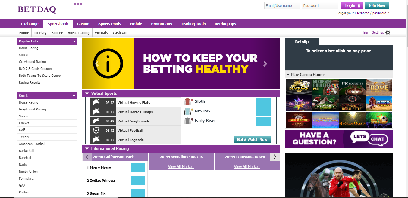 Creating a new account is quite a simple and straightforward procedure. Push the Join Now button and a form will pop up asking you to enter the required information. Providing players are of legal age, the Betdaq login process requires: