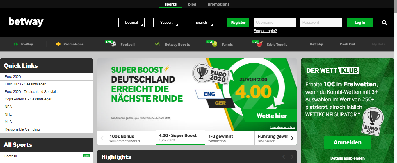 4 To Score: Players participate in this promo for free by just predicting the first 4 scorers in any of Betway's 4 selected games. Entry for this promo is free for new and existing customers. Predicting the first 4 scorers in 4 selected games stands in between punters and £/€50,000 cash.