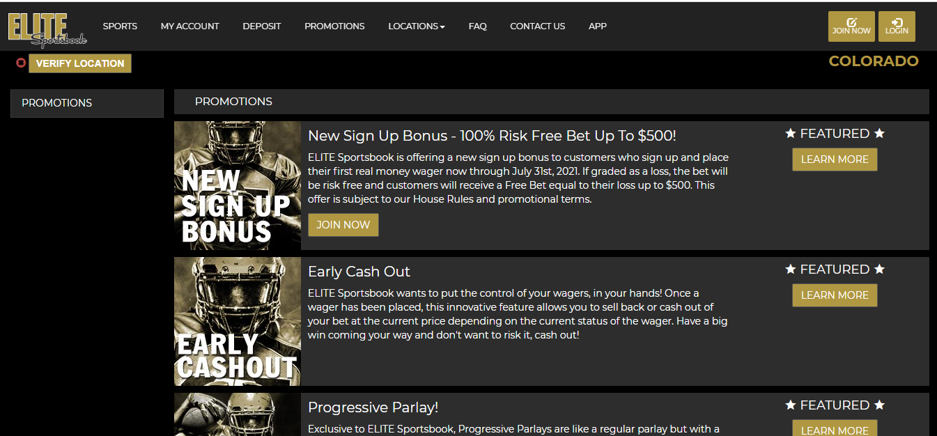 Elite Sportsbook recently introduced a sign-up bonus as a welcoming package for their new customers. Elite Sportsbook offers two different welcome packages, one for Colorado customers and one for Iowa customers.