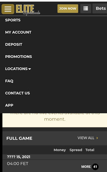 - Load the Elite Sportsbook website on your desktop, mobile, or tablet;