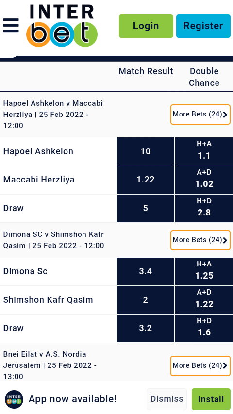 The InterBet online Sportsbook has very impressive odds that are displayed in decimals, bettors can place bets on soccer, cricket, golf, baseball, and a whole lot of sports betting events. Also, bettors can place loads of bet kinds for example draw no bet, Total, Double Chance, etc.