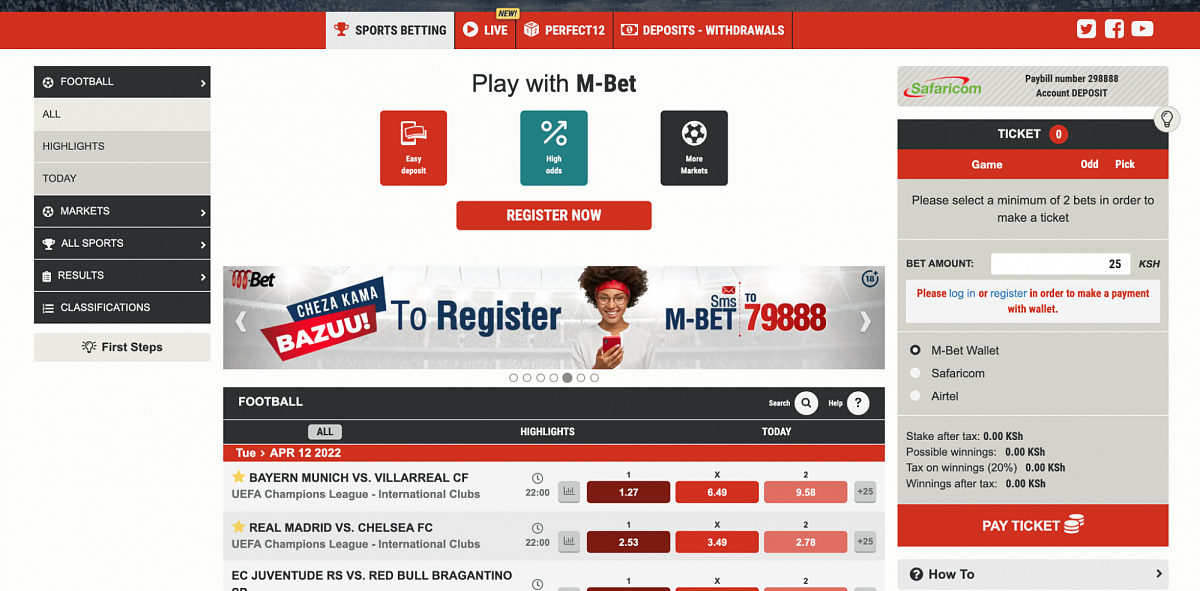M-Bet is one of Kenya's most popular sports betting sites, with a steady stream of new customers. The M-Bet brand has amassed a sizable following of bettors in Kenya, Uganda, Congo, South Africa, Zambia, and Tanzania.