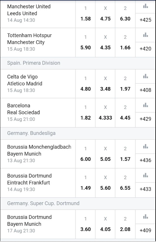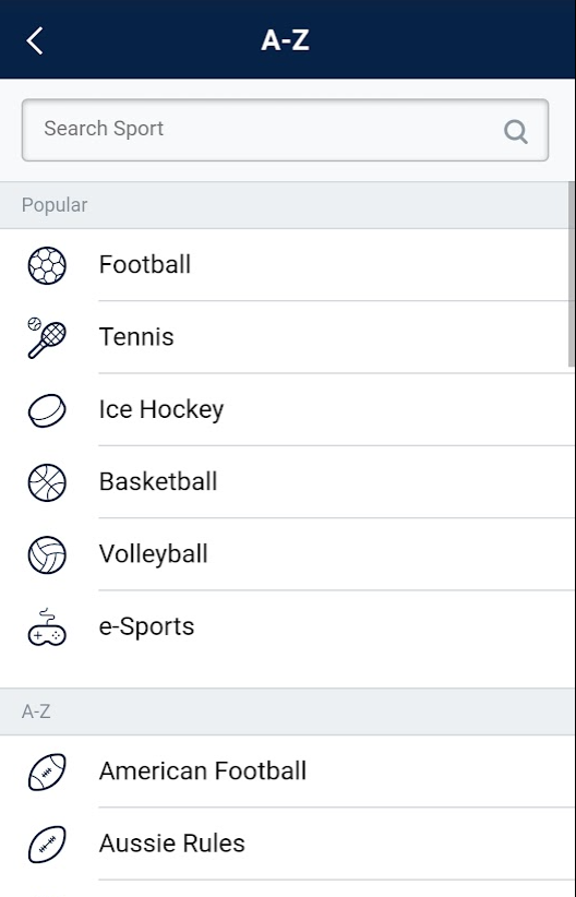 • A wide range of sports games and markets;