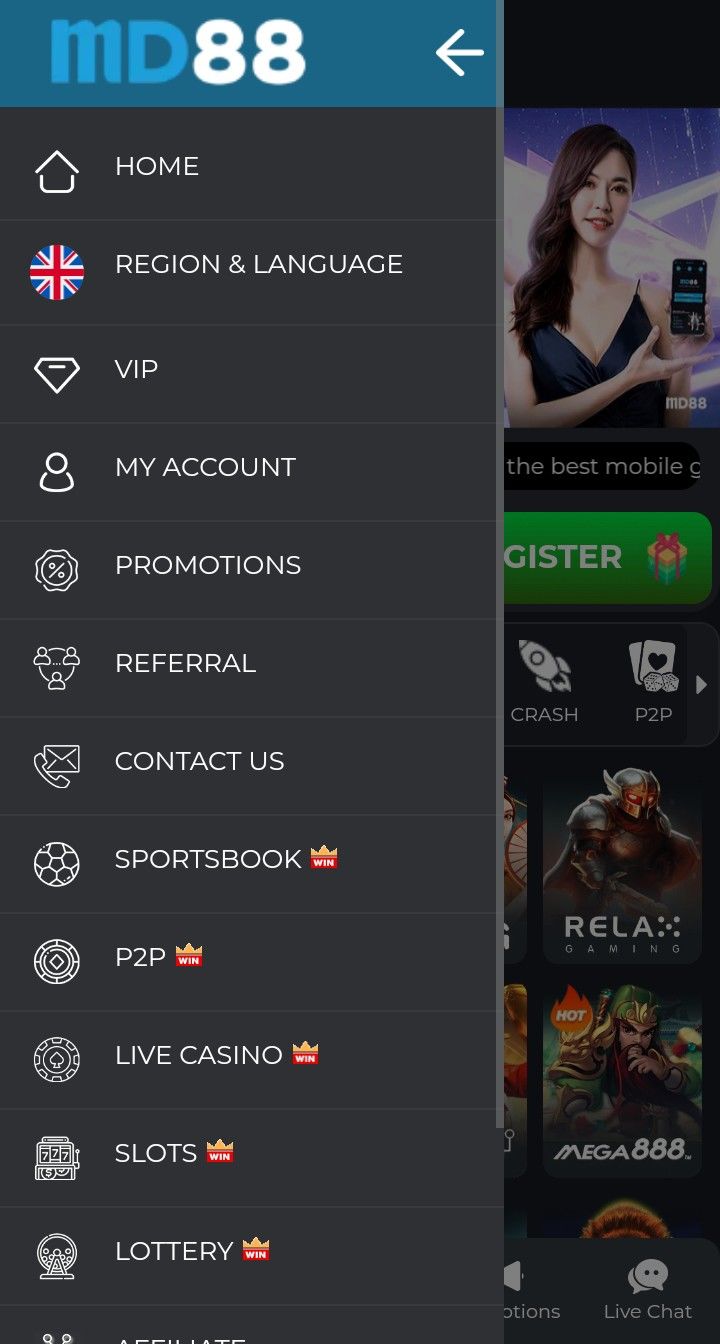 To encourage and reward customers on their platform, MD88 Asia makes a good number of bonuses and promotions available to them. There might be certain differences in the terms of figures and terms of each promo, however, whether you are a player in Malaysia, Indonesia or Singapore, overall, the value of the offerings are to suit bettors in each state. MD88 online bonuses include Welcome Bonus, Free Spins, Daily Bonus, Weekly Bonus, Referral Bonus, VIP Program, etc.