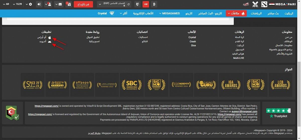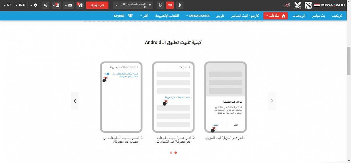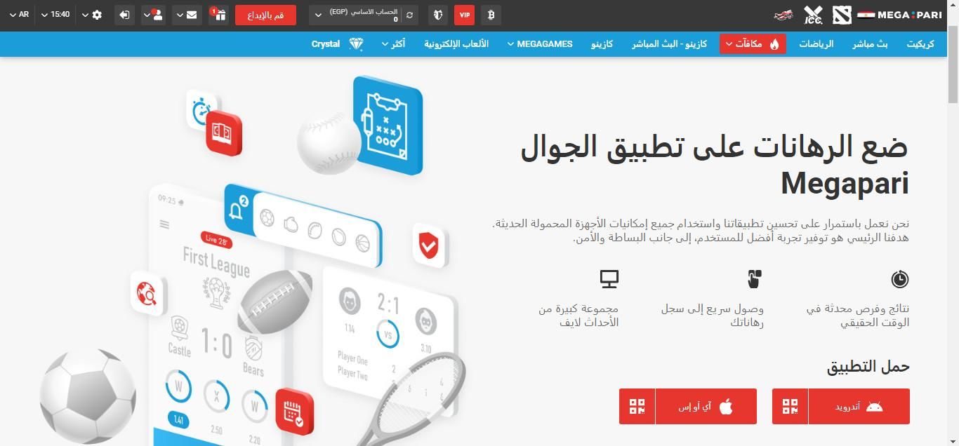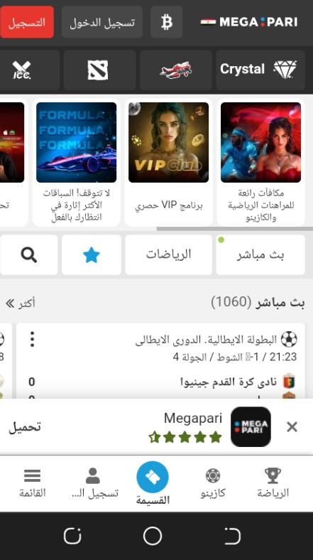البث المباشر: يتيح البث المباشر متابعة المباريات والأحداث الرياضية في الوقت الفعلي. يوفر Megapari تجربة مشاهدة مثيرة وتفاعلية، مما يساعدك على متابعة تقدم الألعاب وتقديم رهانات مباشرة بناءً على أداء الفرق واللاعبين في الوقت الحقيقي.