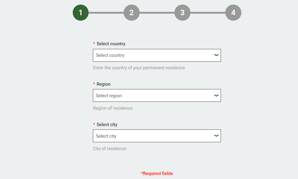 - To finish the registration procedure, a player must first select the desired registration option and then fill in personal information;