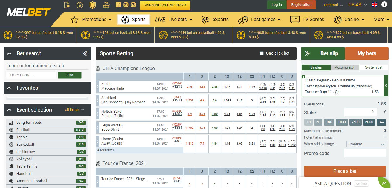 Melbet is one of the greatest online sportsbooks since it provides its customers with great outstanding odds stated in decimals. This sportsbook offers a plethora of sports betting markets on which customers can place wagers such as the total over/under, odd/even, outright winner, handicap, and so on.