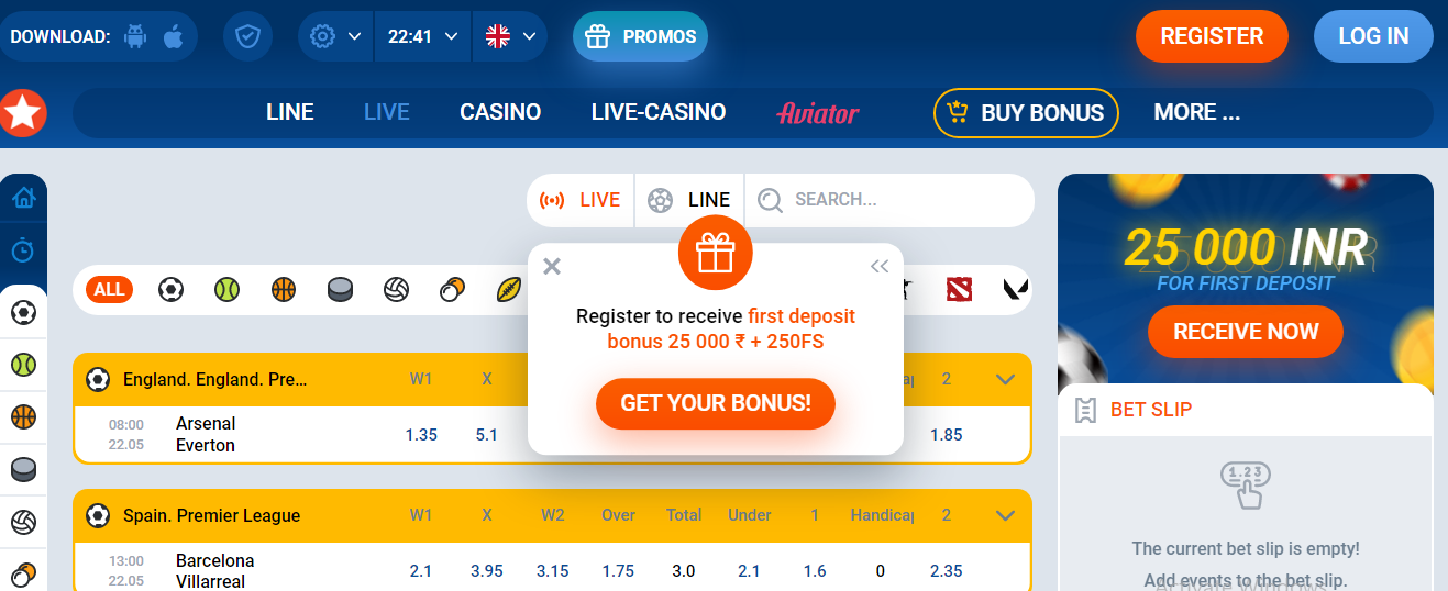 The sportsbook provides a welcome bonus of 125% up to INR 25,000 on making your first deposit. Sign up with Mostbet and deposit at least 146 rupees in your account to enjoy the welcome bonus.