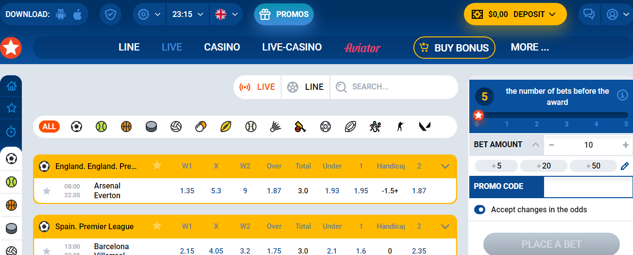 Punters have a huge selection of sports and bet types to choose from. You can never run out of options when betting on this bookmaker. Whether your favorite sport is football, cricket, American Football, handball, or tennis, all these sports and much more are available.