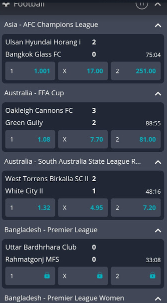 You can bet on all the major leagues in top sports. For instance, you can bet on major football leagues such as the UEFA Champions League, La Liga, and English Premier League. The site offers both pre-match and live betting options, with a cash-out option, should you wish to cash out your bet beefier the end of the event.