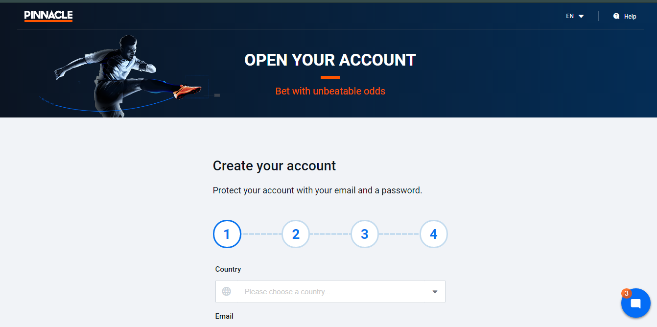 Account registration on Pinnacle sportsbook is divided into four stages. The following instructions break down the stages to make registration easier.