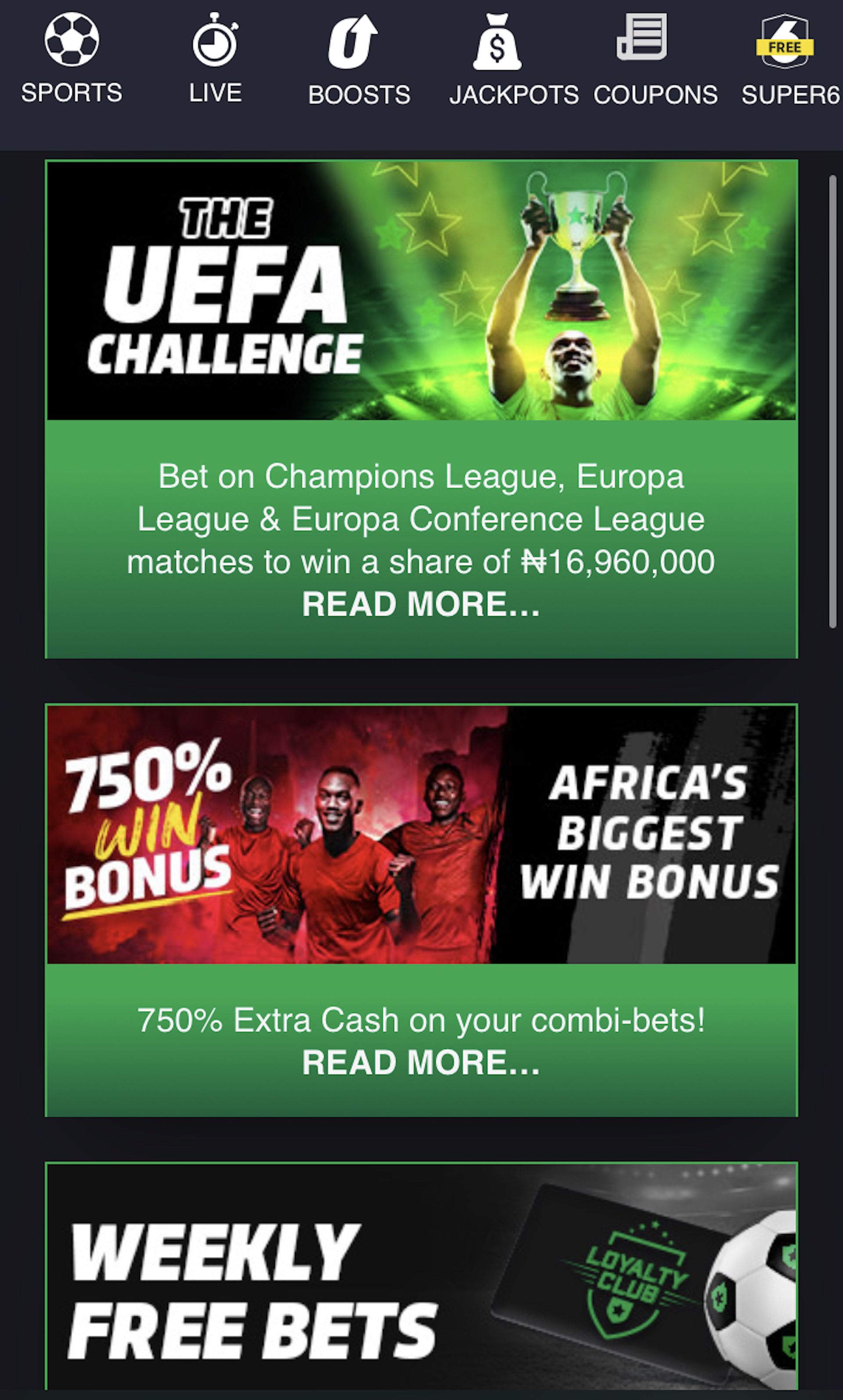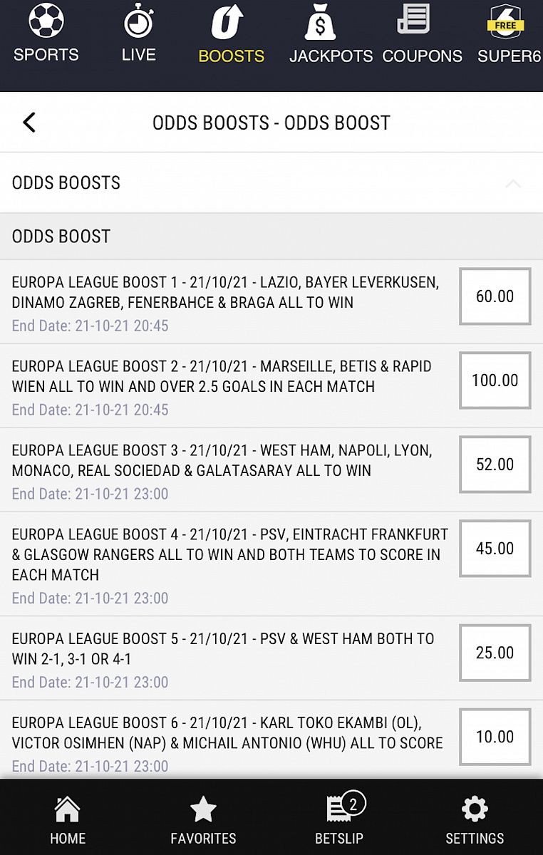 The odds boosts are a selected number of games by the platform itself with very high odds so users can check the selection out and place bets if they are okay with it.