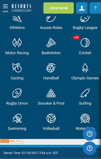 Like other sportsbooks in the US, Resorts bookmakers offer new and registered players opportunities to bet on their favorite games while they are on. All you need to do is log in to the brand’s website or via the mobile app. Check out the games currently played, and you can start placing your bets while they still play. This live sports betting option works for every sportsbook available on the website.