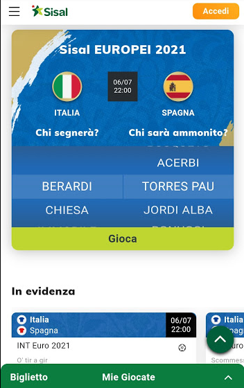 You must select the Bet Bonus manually, or enter the bonus code -350 manually in the registration form. You must also provide your identity document to get the first of the welcome bonus package of €15 to be spent on Sisal games. This must be spread out as €5 on sports or virtual betting, €5 on SuperEnalotto lotteries and Bingo and €5 on poker, cards, slots and quick games.
