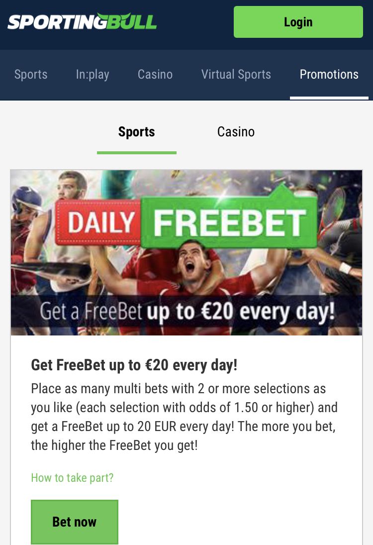 | New sportingbull bonus every day | Every day for 7 days you get a bonus as there are 7 bonuses in total |