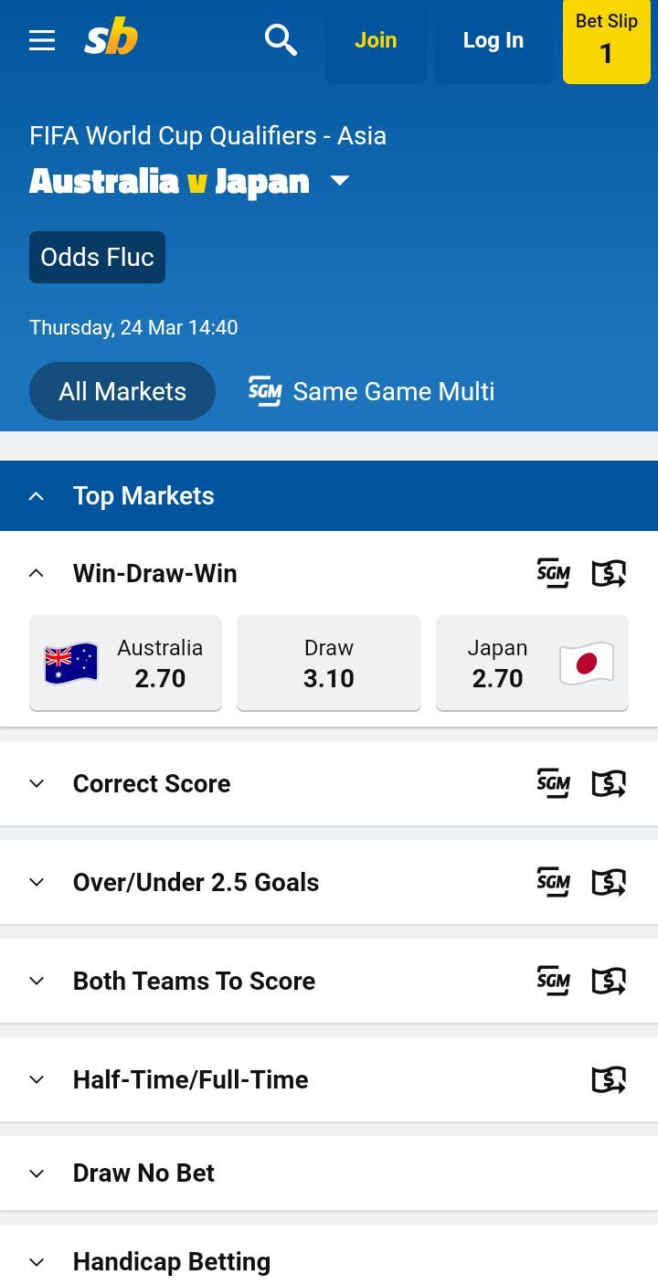 Live-Betting is an amazing feature that allows you to place a bet while watching the event or the match. It is also known as In-play betting. Through this betting feature, you can place the bet after analysing the game. This ensures you a good win if your predictions goes right. The winning amount gets added to your Sportsbet account balance. You can withdraw this cash whenever you want. A bettor picks the best suitable option for them.