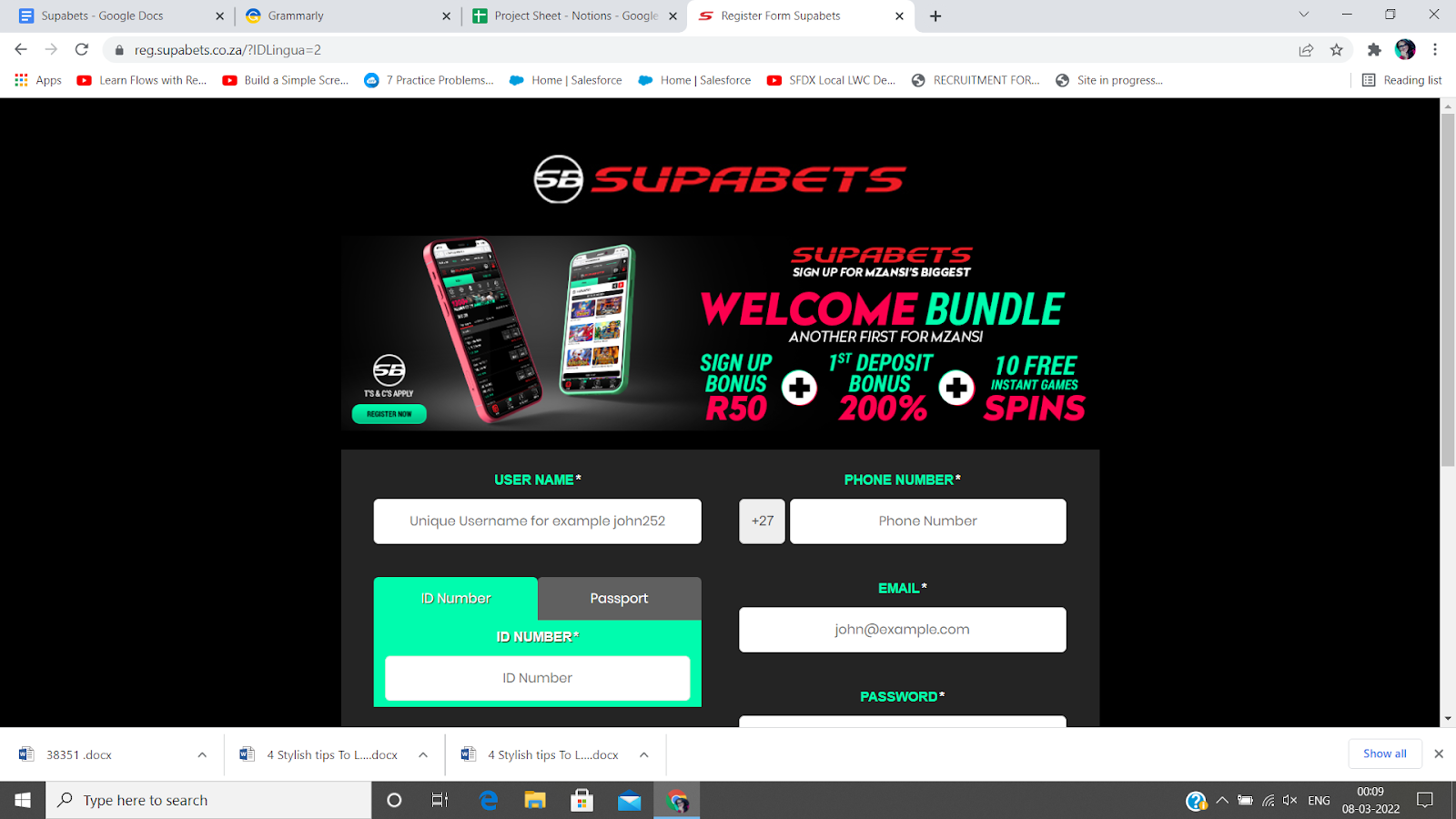Fill out the Supabets registration form by entering accurate information, including your mobile phone number, full name, desired password, date of birth.