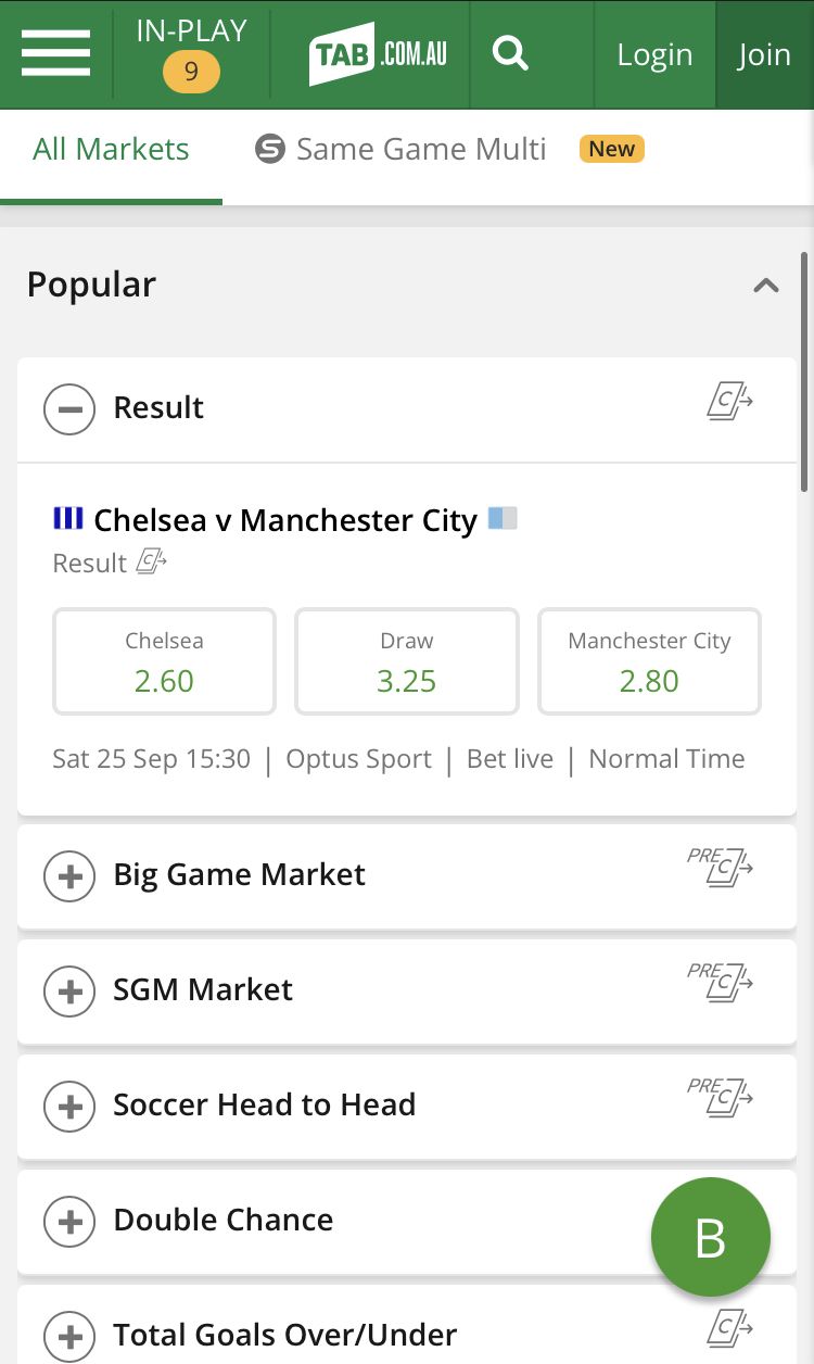 TAB Sportsbook Odds, Lines & Betting Markets