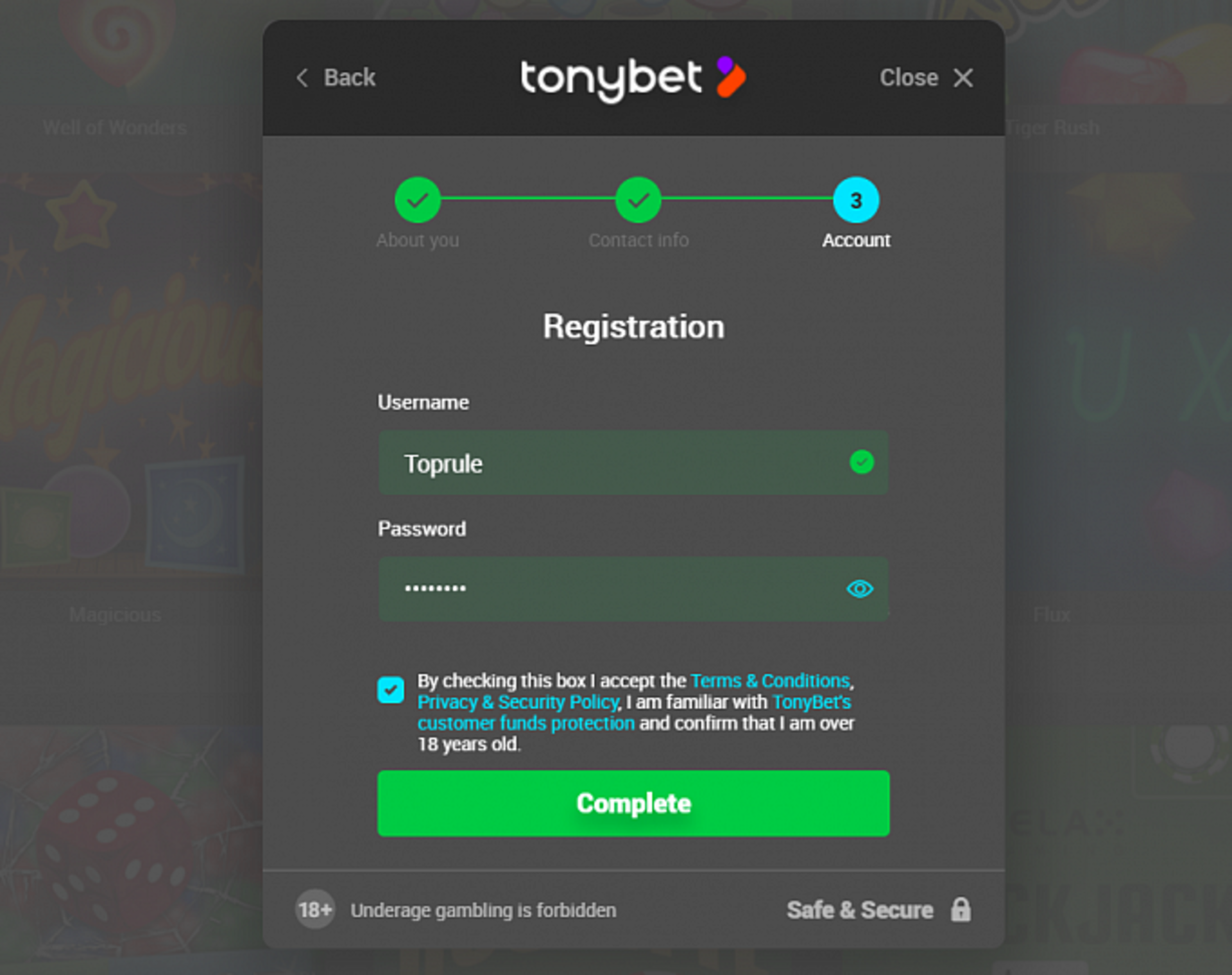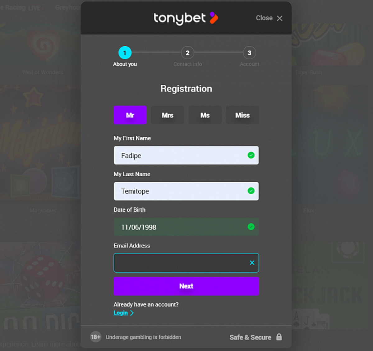 Create a Tonybet Account