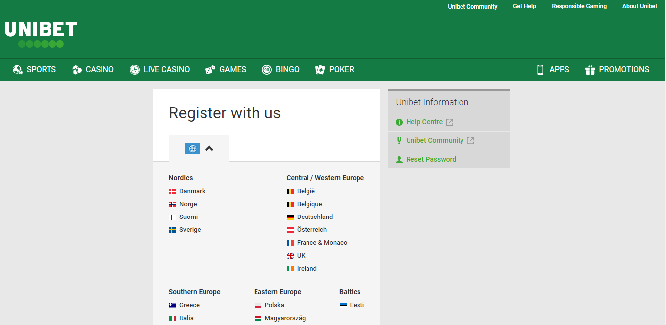 - Visit Unibet's official website;