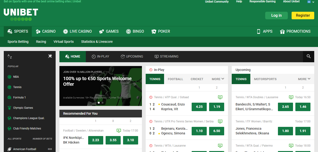 UniBet Sportsbook Live-betting & Live-streaming