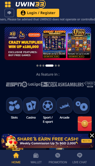 - Visit the Uwin33 official website for Malaysia or Singapore and to load;