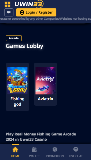 Among the arcade games on Uwin33, fishing, Fishing Gold and Aviatrix are some of the platform's provisions.