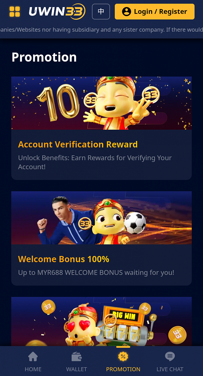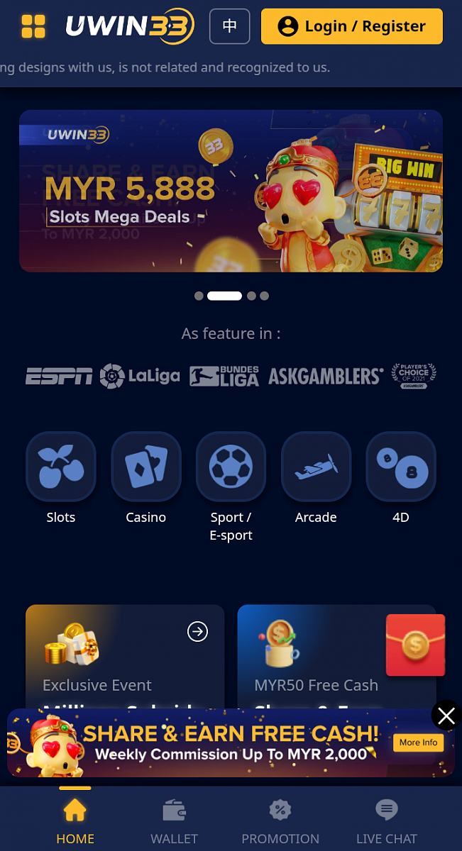 The Uwin33 app provides players in Malaysia and Singapore with some of the most enjoyable sportsbook features, including the greatest games from top game providers. With everything from slots,4D to action-packed fishing games, players are in for a huge amount of fun.