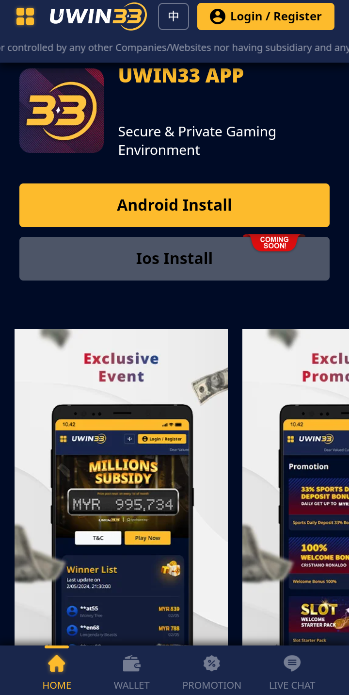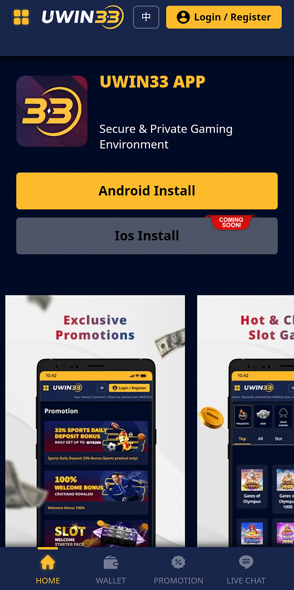 The Uwin33 app allows users to personalize it by allowing them to switch between language options. Players can more easily access all of their favorite features and enjoy the app to the fullest with the customization feature.