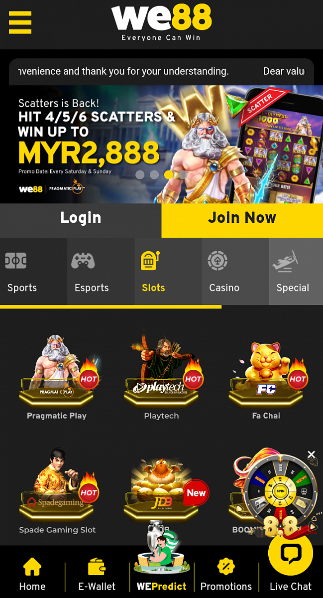 For slot lovers, a nice 10% reload bonus awaits them and is available until the end of the year. For We88 Malaysia, the minimum deposit is MYR 30 to qualify players. And for We88 Indonesia, the minimum deposit is 100,000 IDR to qualify for the bonus, which is applicable for all games, making the bonus even more appealing to members.